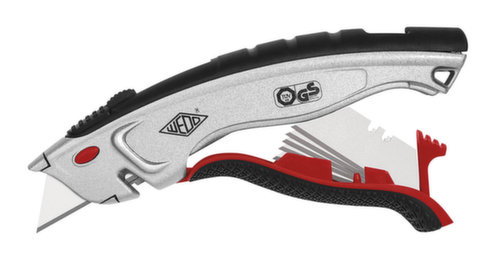 "longDescription": "<h2>Safety Cutter</h2><strong>avec rétractation de lame automatique</strong><br><ul><li>Convient pour droitiers et gauchers</li><li>Poignée en métal ergonomique antidérapante</li><li>Lame montée sur ressort avec rétractation de lame automatique dès qu'elle n'est plus en contact avec l'objet à couper</li><li>Passage de la rétractation de lame automatique à un encliquetage automatique Multi-Stop</li><li>Sortie de lame jusqu'à 25 mm</li><li>Changement de lame facile sans outils</li><li>Avec chargeur de lames de rechange intégré et coupe-cordes</li></ul><br><h3>Livraison :</h3><ul><li>5 lames de rechange trapézoïdales incl.</li></ul><br>Label de contrôle / Contrôlé conformément à :<br>Label GS - Certification TÜV<br>",