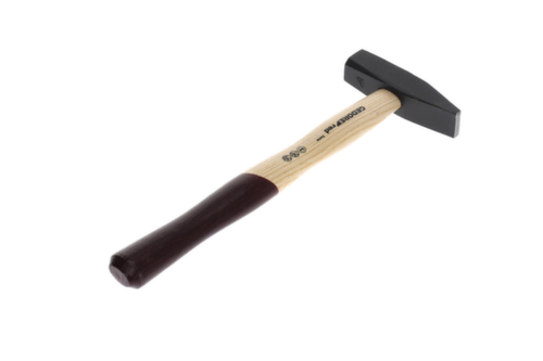 "longDescription": "Gesmede hamerkop, zwart gelakt, gemaakt van gehard staal, slagvlakken inductief gehard voor hard continu gebruik, ontwerp volgens DIN 1041, permanente markering van DIN, fabrikant en gewicht, veiligheidsafschuining zorgvuldig geslepen tot 45° op spoor en helmstok, dubbel gebogen essenhouten handgreep, gelakt handgreepuiteinde verbetert het gevoel, ringwig fixeert de hamerkop door 360° klemkracht.<br>",