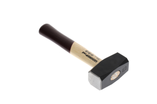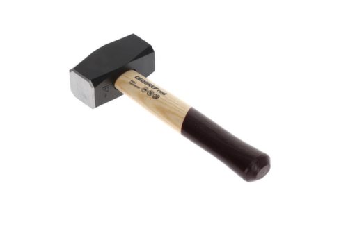 "longDescription": "Gesmede hamerkop, zwart gelakt, gemaakt van gehard staal, inductiegehard slagvlak voor zwaar en langdurig gebruik, ontwerp volgens DIN 6474, permanente markering van DIN, fabrikant en gewicht, veiligheidsafschuining zorgvuldig geslepen tot 45° op het lijf, dubbel gebogen essenhouten handvat, gelakt handgreepuiteinde verbetert het gevoel, ringwig fixeert de hamerkop met 360° klemkracht<br>",