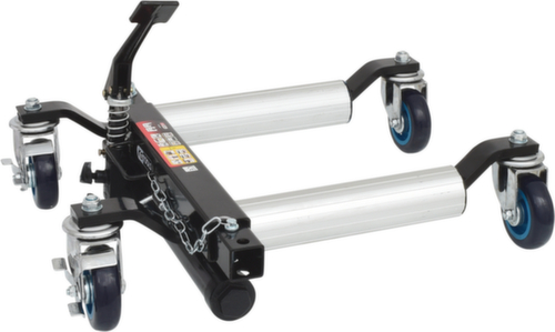 "longDescription": "Universeel inzetbaar aan bestuurders- en bijrijderszijde, zwenkwielen maken het manoeuvreren van voertuigen in krappe ruimtes mogelijk, ideaal voor het manoeuvreren van voertuigen op een vaste ondergrond, gemakkelijk in alle richtingen te rollen, voor plaatsbesparende opslag van voertuigen tijdens reparatiepauzes, ideaal voor showrooms, carrosseriebedrijven, sleepbedrijven etc., gemakkelijk te bedienen met voetpedaal, met zelfsmerende kogellagers, vier massief rubberen zwenkwielen met kogellagers, aluminium steunwielen.<br>",