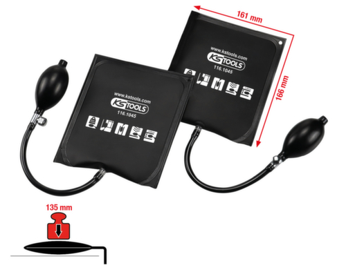 "longDescription": "Universeel inzetbaar voor het positioneren, bevestigen en aandrukken van carrosseriedelen, ideaal voor het openen van autodeuren zonder deze te beschadigen, hulp bij het nivelleren bij het plaatsen van raam- en deurkozijnen, extreem hoge drukkracht, eenvoudig op te blazen met handpomp, robuust drukkussen.<br>",