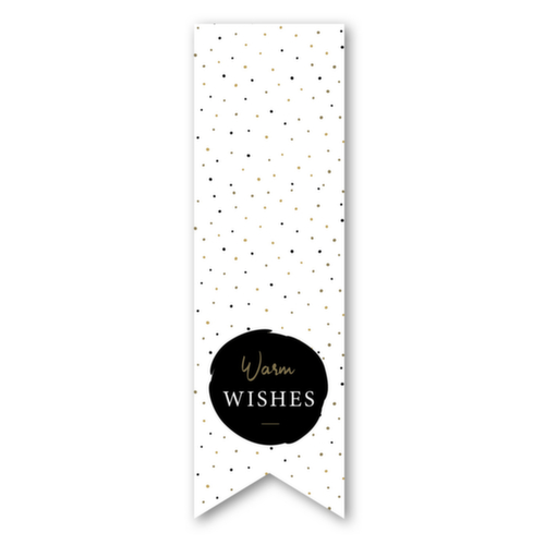 }Langwerpige sluitsticker Engelse boodschap "Warm wishes"