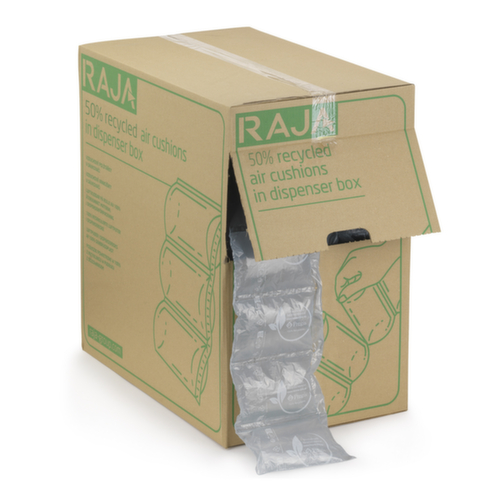 "longDescription": "<h2>Luchtkussens in RAJA dispenserdoos, 50% gerecycled</h2><p>De gerecyclede luchtkussens in de dispenserdoos bieden een efficiënte oplossing voor het verpakken van verzendgoederen. De geprefabriceerde luchtkussens zijn snel bij de hand voor snel gebruik direct op de werkplek. Dankzij hun praktische plaatsing in een voorgeperforeerde eindeloze ketting en hun voorgevulde vorm kunnen ze snel en gemakkelijk worden verwijderd. Dit bespaart voorbereidingstijd en maakt efficiënt verpakken direct op de werkplek mogelijk, zonder onderbrekingen of vertragingen in het verpakkingsproces. De veelzijdige luchtkussens worden gebruikt om te voorkomen dat producten in de verpakking wegglijden, waardoor de artikelen tijdens het transport beschermd blijven. Door hun samenstelling van 99% lucht en slechts 1% PE-folie bieden ze een milieuvriendelijke optie voor het opvullen van lege ruimtes. Door hun lage gewicht hebben ze ook nauwelijks invloed op de transportkosten. Dit maakt ze bijzonder geschikt voor kleinere toepassingen waar efficiëntie en duurzaamheid even belangrijk zijn. De luchtkussens kunnen in kleur variëren door het PCR-gehalte, dus we kunnen de kleur niet garanderen. We bieden ook een ruim assortiment kartonnen dozen en kartons voor het verzenden van uw gevoelige producten. Verdere details - Afmetingen kussen: 20 x 13 cm - Perforatie: elke 13 cm - Volume kussen: ca. 0,16 m³ - Afmetingen doos (L x B x H): 62 x 38 x 62 cm</p><br>",