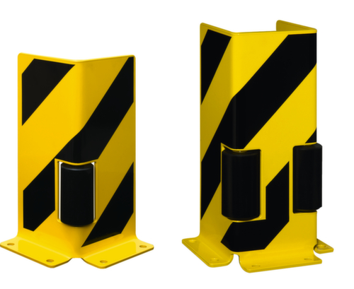 "longDescription": "<h2>Bescherming tegen botsingen</h2><strong>langere levensduur door geleiderol</strong><br><ul><li>Schokken worden geabsorbeerd en zijwaarts afgebogen</li><li>Seinbeeld - geel met zwarte signaalstrepen</li><li>Robuuste plaatstalen constructie</li><li>Extreem slijtvast oppervlak door kunststof coating</li><li>Eenvoudige montage - bodemplaat met voorgeboorde gaten voor pluggen op</li></ul><br>Jij hebt de keuze.<br><ul><li>2-zijdige of 3-zijdige bescherming - als hoek- of U-profiel</li></ul>",