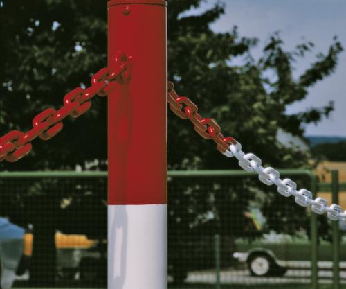 "longDescription": "<h2>Barrièreketen</h2><strong>uiterst veerkrachtig en getest op scheursterkte</strong><br><ul><li>Voor de afbakening van paden, pleinen en verboden zones in combinatie met slagboompalen.</li><li>Gemaakt van nylon of staal, speciaal gegalvaniseerd met extra plastic coating, dikte 6 mm</li><li>S-haken voor ophangen en afhaken en verbindingsschakels voor kettingmontage als toebehoren</li></ul>",