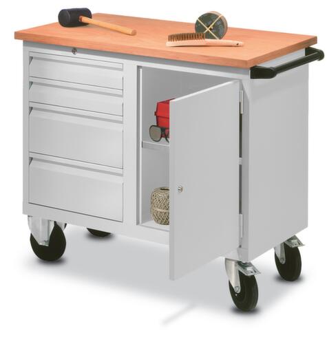 "description": "verrijdbaar, RAL 7035, HxBxD 915x1090x600mm, multiplexblad, draagverm. 400kg, 4voeten, uitrusting: 4laden, kast, lichtgrijs",