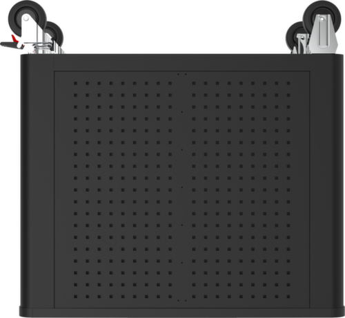 "longDescription": "ABS omranding met vakjes voor kleine onderdelen, zeer stevige plaatstalen constructie met 0,8 mm plaatdikte - torsiebestendig, hoge stabiliteit, zijpanelen met vierkante perforatie voor het bevestigen van diverse accessoires, individuele vergrendeling voorkomt onbedoeld openen, centrale vergrendeling van alle laden door cilinderslot, ladegeleiders met kogellagers, met hoekbeschermers van polyurethaan, laden 100% uittrekbaar, met metalen handgreep aan de zijkant, met 2 wielen elk Ø 125 mm, met 2 zwenkwielen elk Ø 125 mm met rol- en draaiblokkering, greeplijsten over de hele lengte, elektrostatisch gepoedercoat<br>",