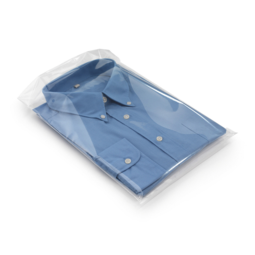 "longDescription": "<h2>Zakken met bodemvouw 300 x 400 mm</h2><p>De transparante zakken zijn ideaal voor het verpakken van je T-shirts, hemden of andere kledingstukken en geven ze een hoogwaardige, glanzende uitstraling. De praktische, hersluitbare kleefafdichting sluit betrouwbaar en beschermt je goederen tegen stof, vuil en vocht. - Materiaal: PP- Dikte: 50 µ- Bodemvouw: 60 mm- Verpakkingseenheid (PU): 1.000 stuks- Opmerking: Er kunnen kleine maatafwijkingen zijn als gevolg van productietechnologie.</p><br>",