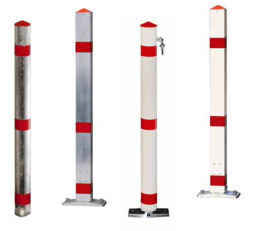 "description": "m. spitse kop hoekig, HxBxD 900x70x70mm, staal, verzinkt, reflecterend, uitneem-/afsluitbaar, driekantslot, m. grondplug",