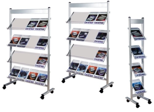 "title": "Mobiel folderrek, 4 planken, onderstel aluminium-zilver",