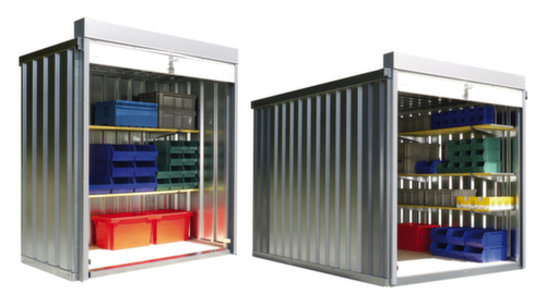 "description": "HxBxD 2320x2100x1140mm, m. houten vloer, roldeur van aluminium, verzinkt",