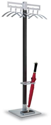 "longDescription": "<h2>Staand garderoberek</h2><br><h3>Onderstel:</h3><ul><li>van staal met poedercoating</li><li>stabiele met beton gevulde voet</li></ul><br><h3>Uitrusting:</h3><ul><li>geschikt voor max. 6 kledinghangers of 5 dubbele haken, ook een combinatie is mogelijk</li></ul><br><h3>Accessoires (apart bestellen):</h3><ul><li>individueel vorm te geven dankzij gebruik van dubbele haken en/of kledinghangers</li><li>parapluhouder met afdruipbakje</li></ul>",