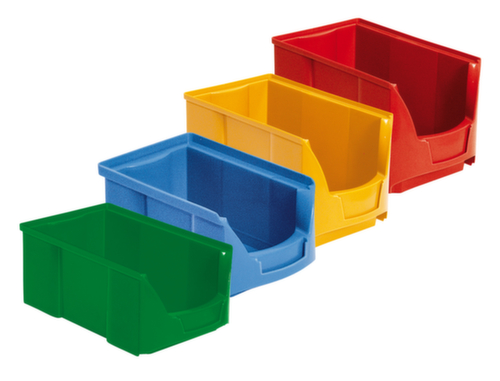 "longDescription": "<h2>Futura voorraadbak met open voorzijde</h2><strong>gemakkelijke toegang door diepe toegangsopening</strong><br><ul><li><strong>milieuvriendelijk en vormvast</strong> - van slagvast polyethyleen</li><li><strong>hoog belastbaar</strong> dankzij stabiele balken aan de langszijden</li><li><strong>veilig optillen</strong> - ergonomische verzonken grepen aan kop- en achterzijde</li><li><strong>precies passend stapelbaar</strong> dankzij rondom lopende stapelrand</li><li><strong>geschikt voor rollenbanen</strong> - gladde onderzijde dus goede loopeigenschappen</li></ul><br>Deze opbergbak met open voorzijde uit de Futura-serie is de optimale en flexibele oplossing voor het opbergen van kleine onderdelen op legborden. De slagvaste constructie van polypropyleen heeft een garantie van 10 jaar en is compatibel met de populairste opbergbakken met open voorzijde op de markt. <br><br>Met de verschillende maten en kleuren kunt u uw eigen individuele organisatiesysteem creëren. Voor een optimaal overzicht kunt u de bijpassende etiketten voor etikettering direct bestellen. Dit garandeert dat uw medewerkers altijd snel en zonder zoeken het benodigde keukengerei kunnen vinden. Dit bespaart tijd en vooral geld.<br><br>Ergonomische verzonken handgrepen aan de voor- en achterkant zorgen voor een gemakkelijke hantering, zelfs met handschoenen aan. De gladde oppervlaktestructuur zorgt voor een optimale benutting van het volume en de opslagbak met open voorzijde is daardoor snel en gemakkelijk te reinigen. Dit is bijzonder belangrijk in de levensmiddelenindustrie. <br>De opbergbakken kunnen veilig op elkaar worden gestapeld dankzij de rondomlopende stapelrand en de stevige stangen aan de lange zijde. Hierdoor kunt u een enorme hoeveelheid opslagruimte besparen. De afgeronde toegangsopening biedt gemakkelijk toegang tot de onderdelen, zelfs wanneer ze gestapeld zijn.<br><br><strong>Goed om te weten!</strong><br>Polypropyleen (PP) is milieuvriendelijk en volledig recyclebaar. Het is temperatuurbestendig van -20°C tot +80°C en zeer vormvast en onbreekbaar. Het is geschikt voor levensmiddelen en volkomen fysiologisch. Bovendien is PP bestand tegen logen en zuren (gelieve aan te vragen).<br>",