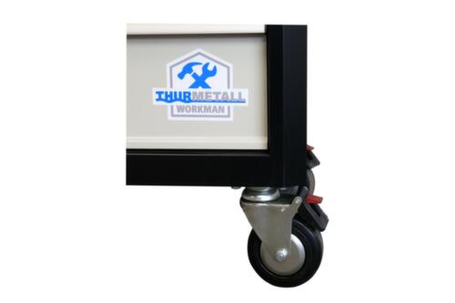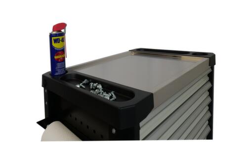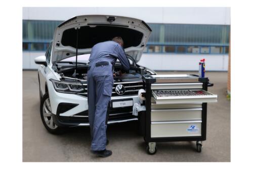 Met 6 laden biedt de gereedschapswagen voldoende opbergruimte om uw gereedschap altijd overzichtelijk en direct binnen handbereik op te bergen. Uittrekstop. De stop voorkomt het onbedoeld volledig uittrekken van de lades. afsluitbaar met centrale vergrendeling.