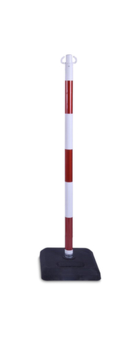 De belangrijkste afmetingen van het UDOBÄR afzetsysteem in één oogopslag:reflectiestrepen in signaalkleur verhogen de zichtbaarheid. voet robuuste uitvoering: het systeem overtuigt door de zware, stabiele voeten met hoge stabiliteit. paal van kunststof in rood/wit. voet van kunststof in zwart. ketting in rood/wit. Voor opstelling op de vloer.