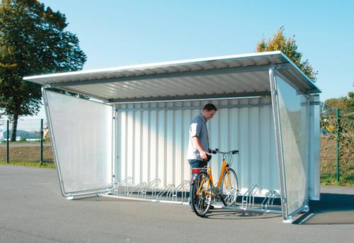 "description": "v. overdekte fietsenstalling, aanbouw links, wand trapeziumplaat verzinkt/poedercoating, RAL9002, meerprijs",